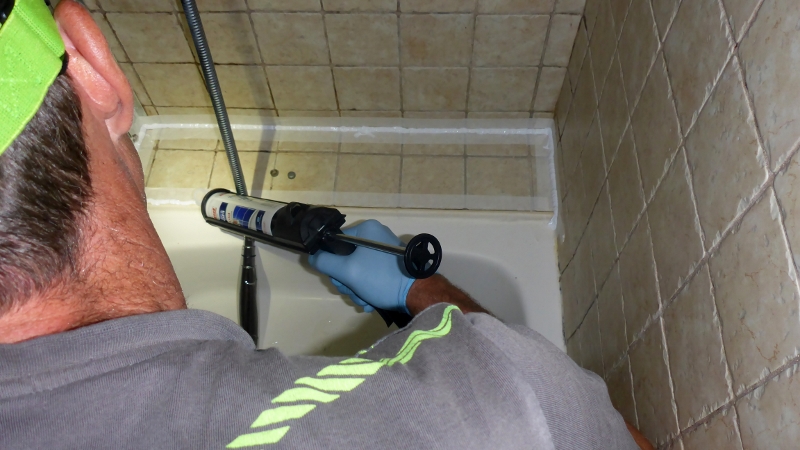As the weather changed we moved into indoor jobs and the biggest was to tackle a large patch of damp in the shower room downstairs - the plaster and the wooden boxing around the pipes looked awful and, of course, tenants don't have the same kind of "I'll just investigate the cause of that" mentality as home-owners do. So, we stripped away the sodden wood and were shocked to find a pool of water under the shower tray - the cause was simple, the seal at the bottom of the tiles had failed, but it was quite a job to fix.